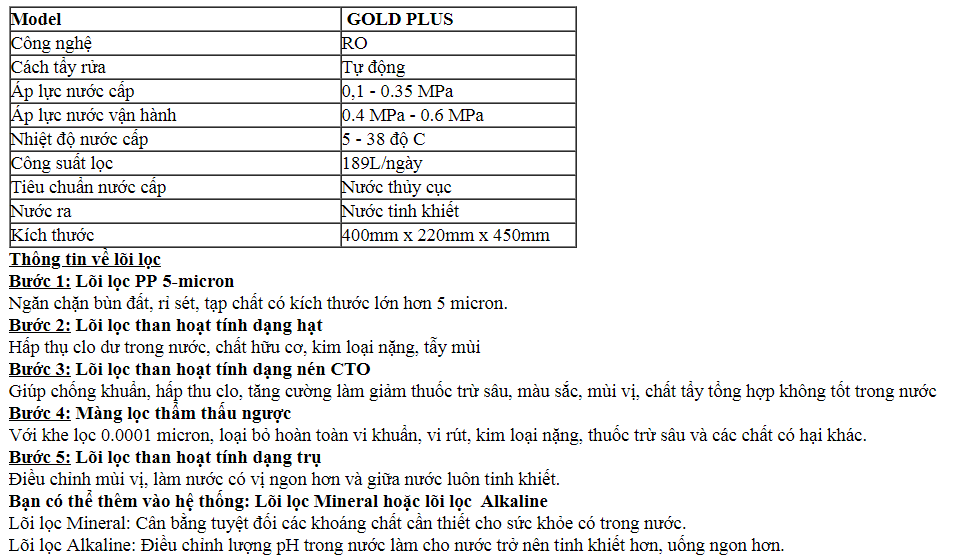 Máy lọc nước Toàn Mỹ Gold Plus được sản xuất trên công nghệ hiện đại. Màng lọc RO thẩm thấu ngược sử dụng công nghệ nén nước đầu vào, nước sạch được đi qua màng lọc, các chất ô nhiễm được đẩy qua đường nước thải. Khe lọc của màng thẩm thấu ngược nhỏ hơn đường kính sợi tóc tới 500.000 lần. Than hoạt tính làm bằng gáo dừa làm cho sản phẩm thân thiện với môi trường