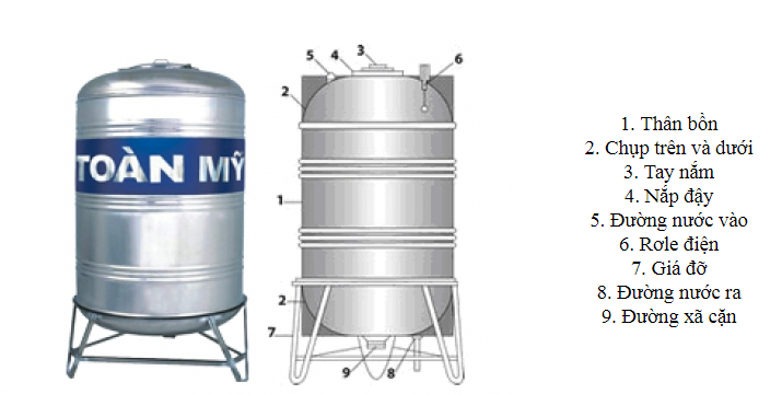 Các bộ phận của bồn chứa nước inox Toàn Mỹ