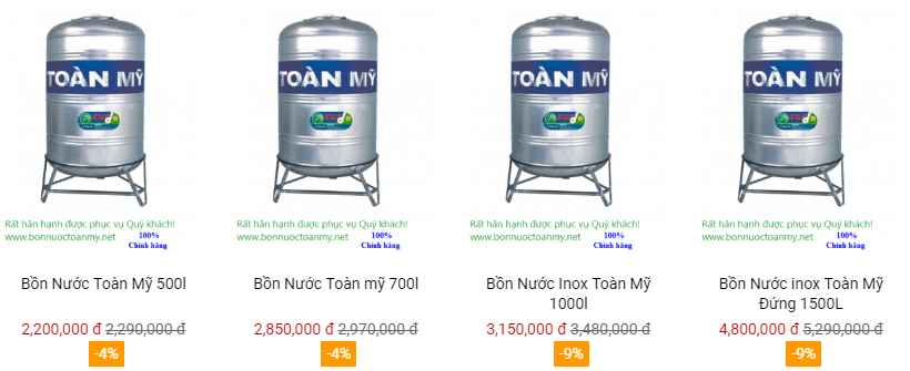 Giá bán bồn nước inox Toàn Mỹ mới nhất năm 2018